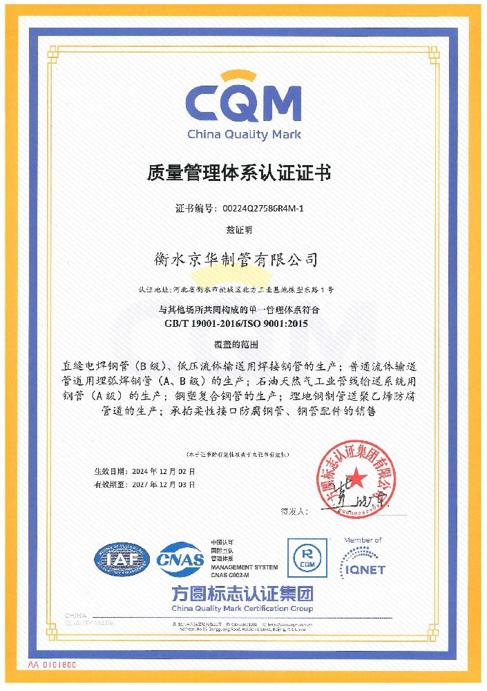 質(zhì)量管理體系認(rèn)證證書(shū)