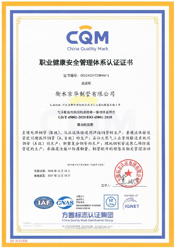 職業(yè)健康安全管理體系認(rèn)證證書(shū)